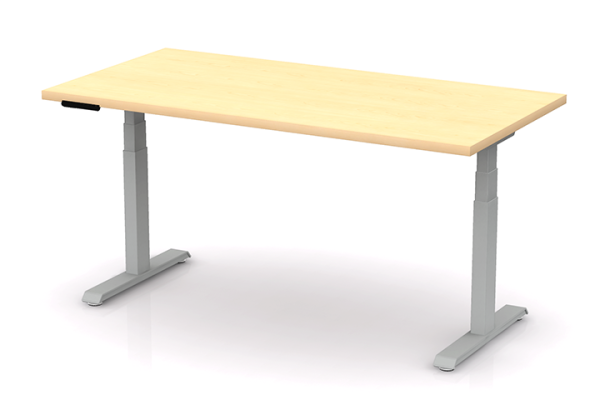 Description: 60” Wide x 30” Deep Rectangle Worksurface, Silver T-Leg Base, 3-Stage, Memory Keypad Control Type, 24” Cable Management Tray.