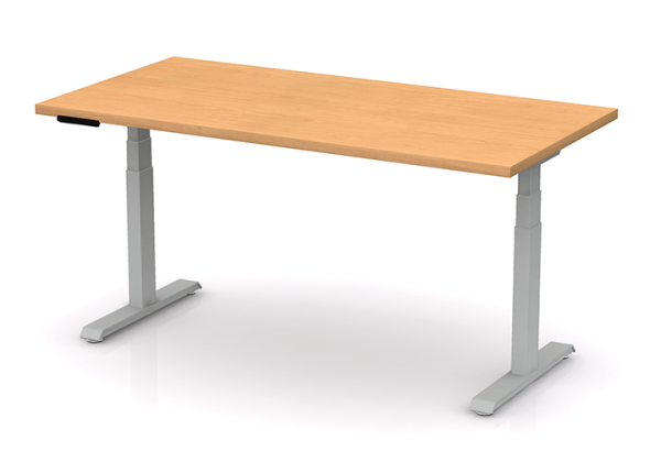 Description: 60” Wide x 30” Deep Rectangle Worksurface, Silver T-Leg Base, 3-Stage, Memory Keypad Control Type, 24” Cable Management Tray.
